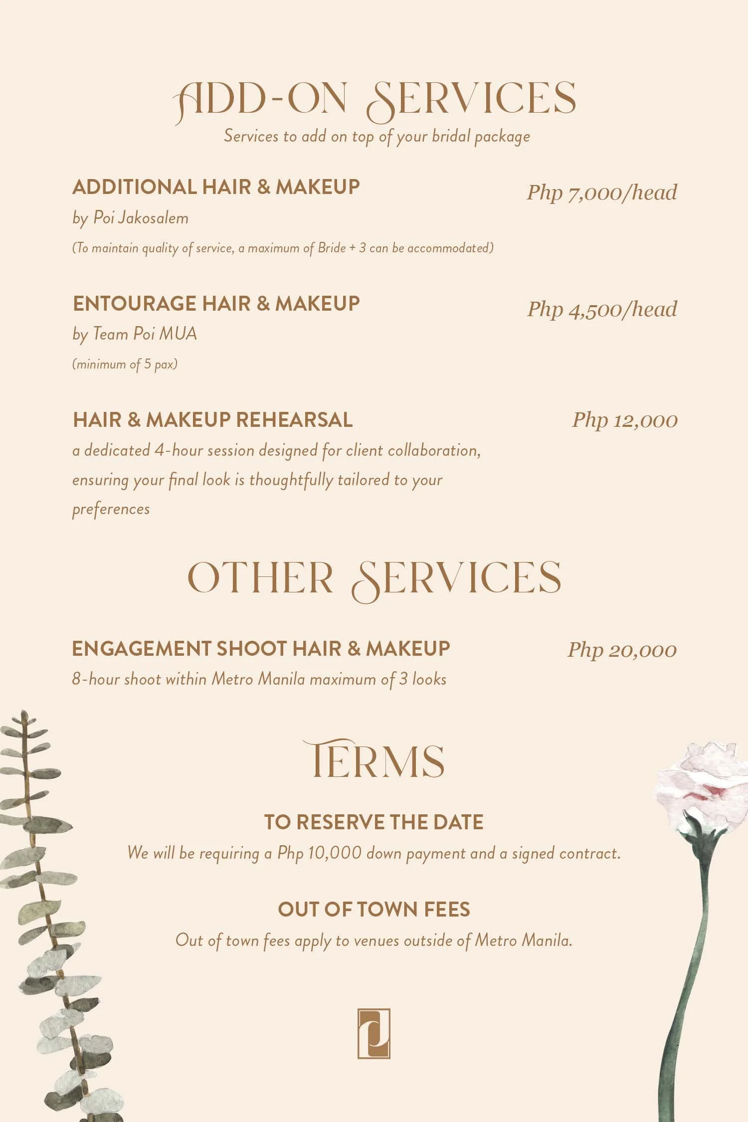 BRIDAL PACKAGE/SERVICE: